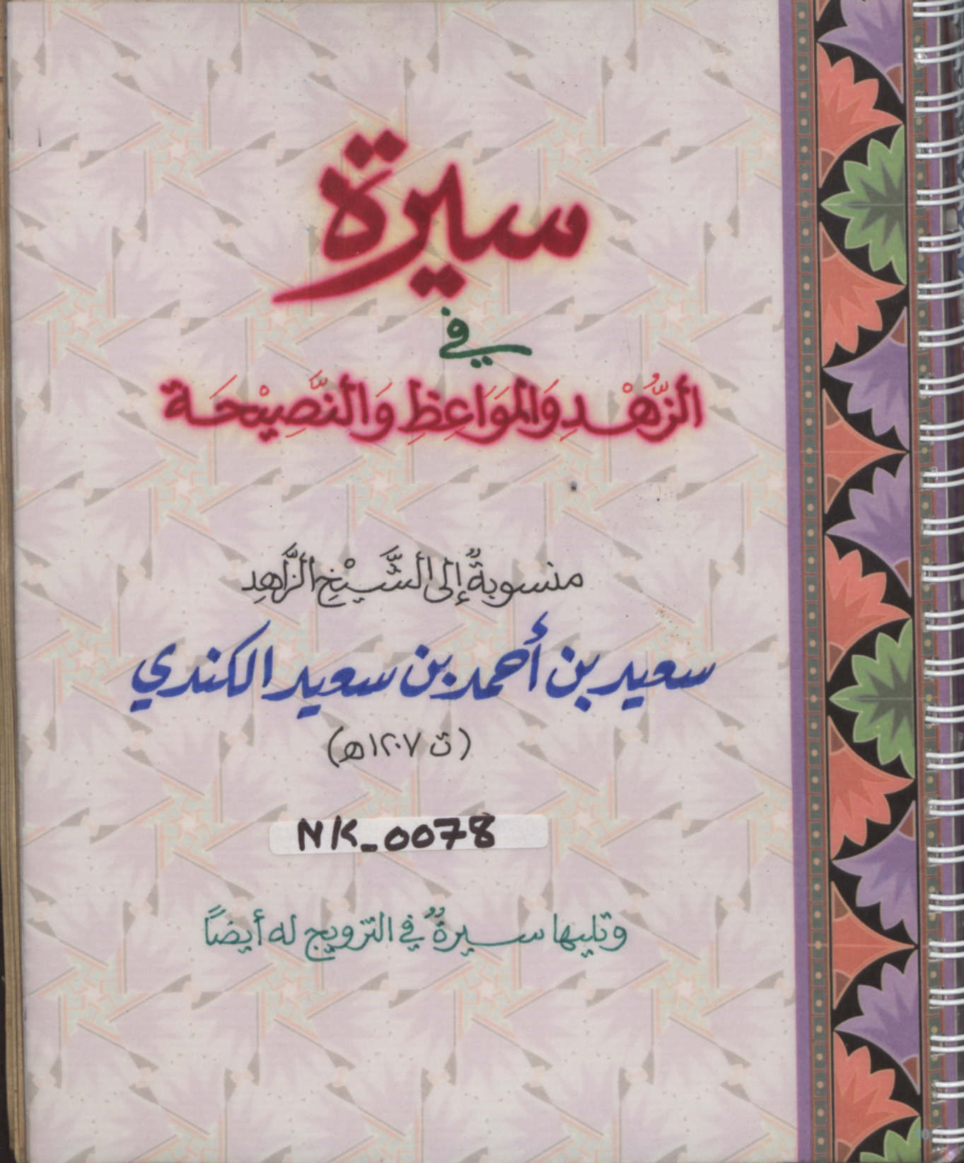 اسم المخطوط سيرة في الزهد والمواعظ والنصيحة(سيرة الكندي) المؤلف الشيخ سعيد بن أحمد بن سعيد الكندي الكاتب ———————— سنة النسخ ————————